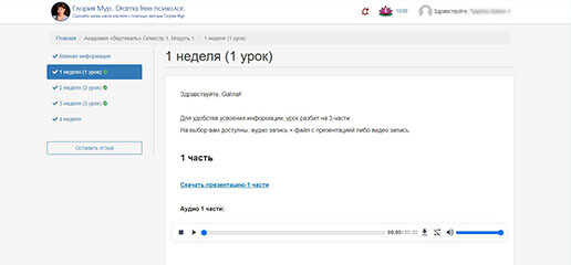 Это такие глубокие знания, что возвращаясь к ним повторно открывается новое виденье данного вопроса. Для меня этот курс оказался местом силы. Я чувствовала поддержку. В моей жизни, спокойствие от знаний, приятные моменты ожидания каждого урока.